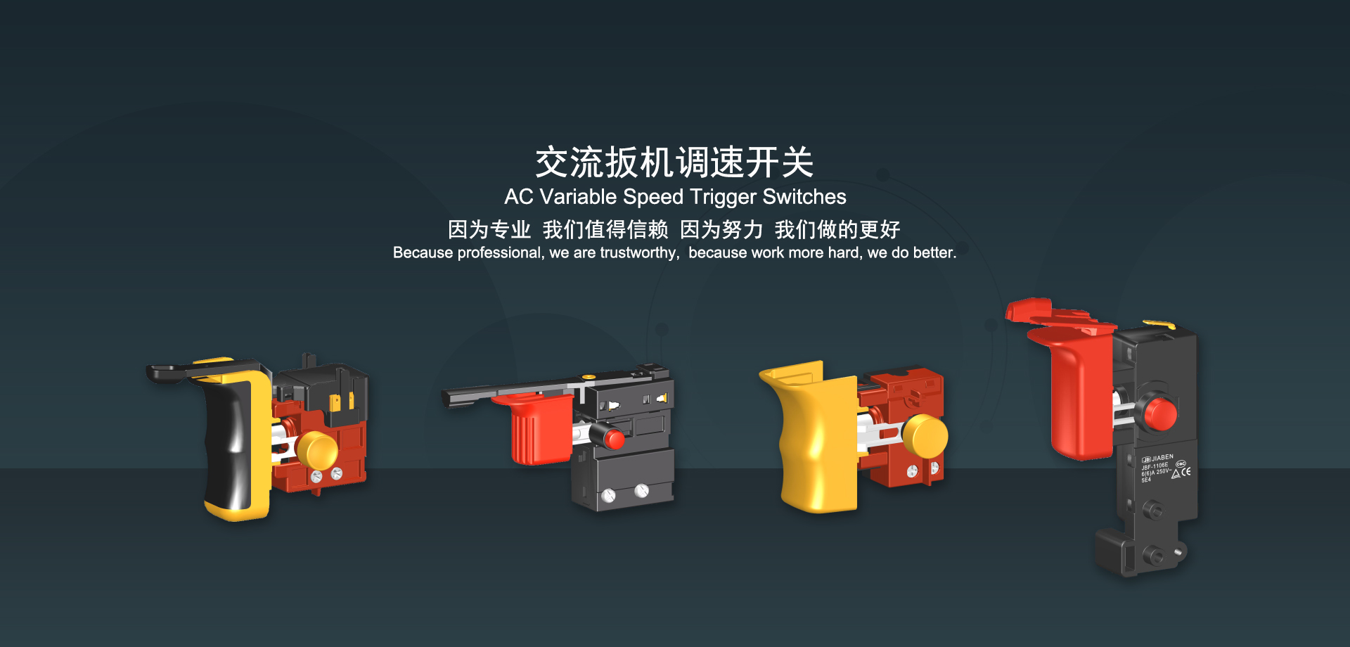 浙江佳奔電子有限公司始建于1986年,坐落于浙江省樂清市虹橋鎮東電子信息產業園內,現有職工700多人,資產總額超3億元。公司主要經營“JIABEN”牌微動開關、蹺板開關、按鈕開關、扳機開關、調速開關和電位器開關等各類交、直流器具開關和各類交、直流線路板模塊等產品,主要應用于交、直流電動工具、電動園林工具、清潔器具、家用電器和小型機床等行業,是集產品設計、研發(fā)、制造、銷售和服務于一體的國家高新技術企業。JIABEN was founded in 1986, located in East Electronic Information Industry Park, Hongqiao Town, Yueqing City, Zhejiang Proviance, existing staff more than 700 peoples, more than 300 million RMB worth of assets. Company is mainly engaged in "JIABEN" brand Micro Switch, Rocker Switch, Push-button Switch, Trigger Switch, Speed Regulating Switch, Potentiometer Switch and other kinds of appliance switch and all kinds of AC or DC circuit board module, such as more than 100 series, 8000 kinds of models of products, mainly used in AC or DC Power-tools, Power Gardening Tools, Cleaning Appliances, Household Appliances and Small Machine Tool and other industries, is the collection product design, research and development, manufacturing, sales and service in one of the national high and new technology enterprise.